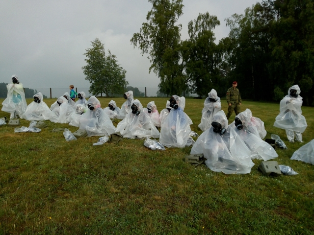 O obědě proběhla branná soutěž družstev spojená právě se střelbou ze vzduchovek a překonáváním překážek, kterou připravili vojáci ze skupiny přípravy. Po soutěži následovalo zaměstnání z „Přežití v tísni“, při kterém se školáci naučili pracovat s mapou a buzolou, naučili se vybudovat nouzové přístřešky z ponča nebo celty a rozdělávat oheň za pomoci troudu a křesadla. Završením odpoledního zaměstnání bylo OPZHN (obrana proti zbraním hromadného ničení), kde se všichni školáci a školačky, pod vedením zástupce velitele čety chemické ochrany, naučili nasazovat ochrannou masku OM-90 a obléci si ochrannou pláštěnku JP-90 včetně přezůvek a rukavic. A na závěr provedli „překonání zamořeného terénu“.